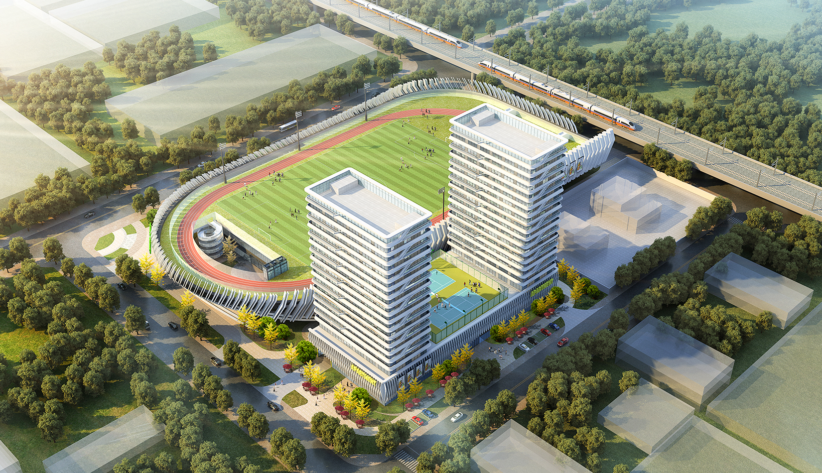 本項目提取高鐵動車和海浪浪花的概念,用白色鋁板陣列與變化塑造出體育綜合體泛著浪花的海洋波浪造型。同時利用動車動感流線的造型設(shè)計出公寓的整體方案。海浪與動車流線結(jié)合,不僅代表了青島的特色,更是詮釋了積極動感的體育精神。將景觀引入建筑,以景觀打造形象,形成未來綜合體發(fā)展模式。