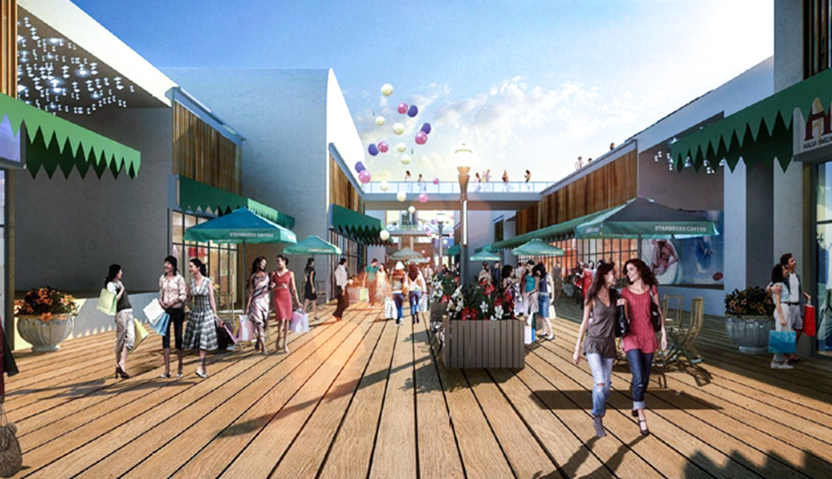 三區(qū):三個(gè)特色分區(qū),分別為門(mén)戶(hù)形象展示區(qū)、入口休閑購(gòu)物區(qū)、特色餐飲娛樂(lè)區(qū)