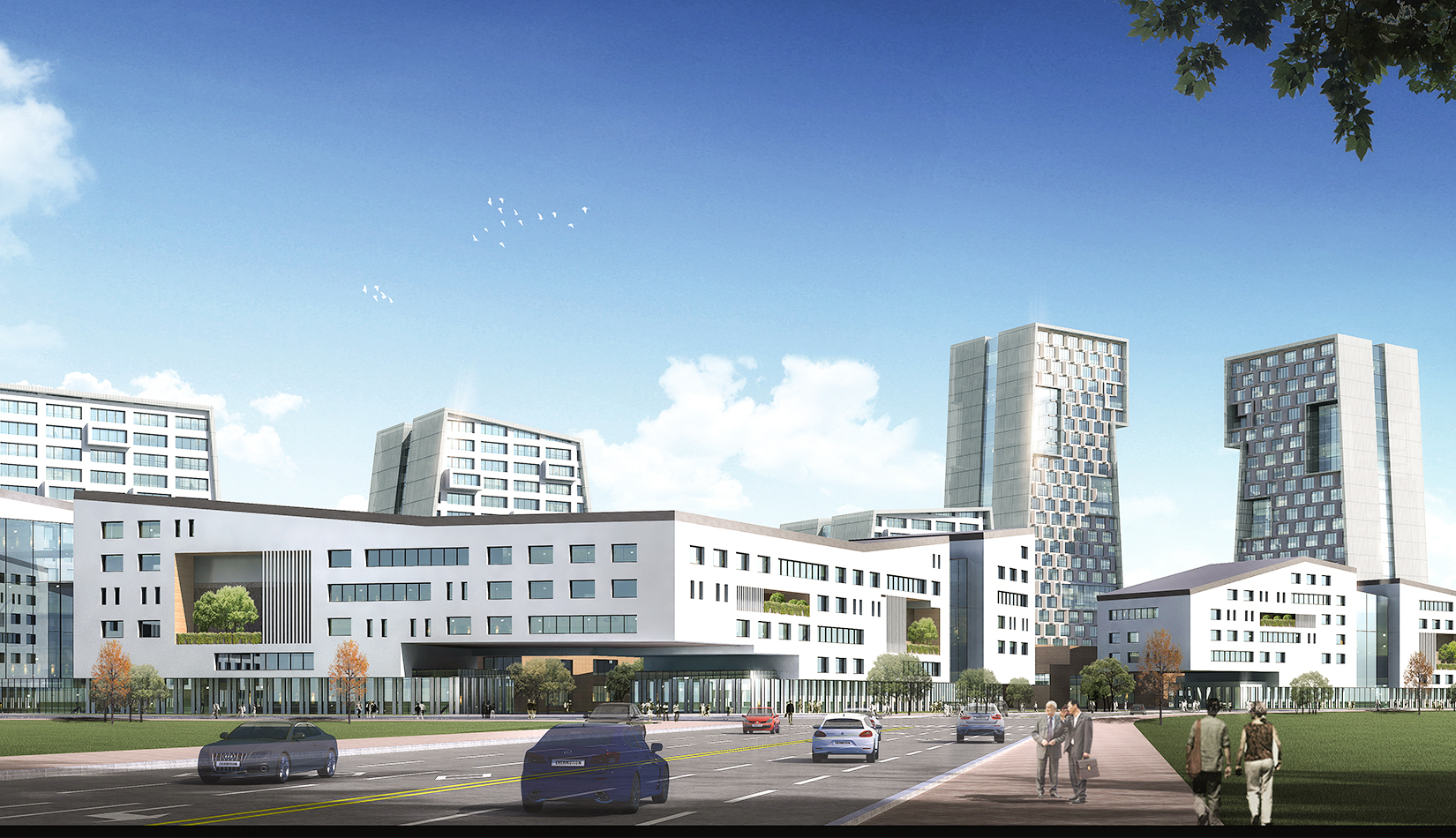 為了打造一個(gè)完美的城市沿街形象,以及營(yíng)造一個(gè)安靜舒適的工作與休閑空間,我們采用了半圍合的規(guī)劃布局,北側(cè)高層建筑基本成“一”字布局,高低錯(cuò)落,塑造完美的城市天際線,宛如一條盤(pán)旋上升的巨龍;在南側(cè)一個(gè)個(gè)長(zhǎng)方形建筑成折線型連續(xù)排列,隔離周邊嘈雜的城市環(huán)境,猶如越出水面的“金鱗”,中央景觀帶東西側(cè)以友好的姿態(tài)向城市開(kāi)放,美化城市形象。\