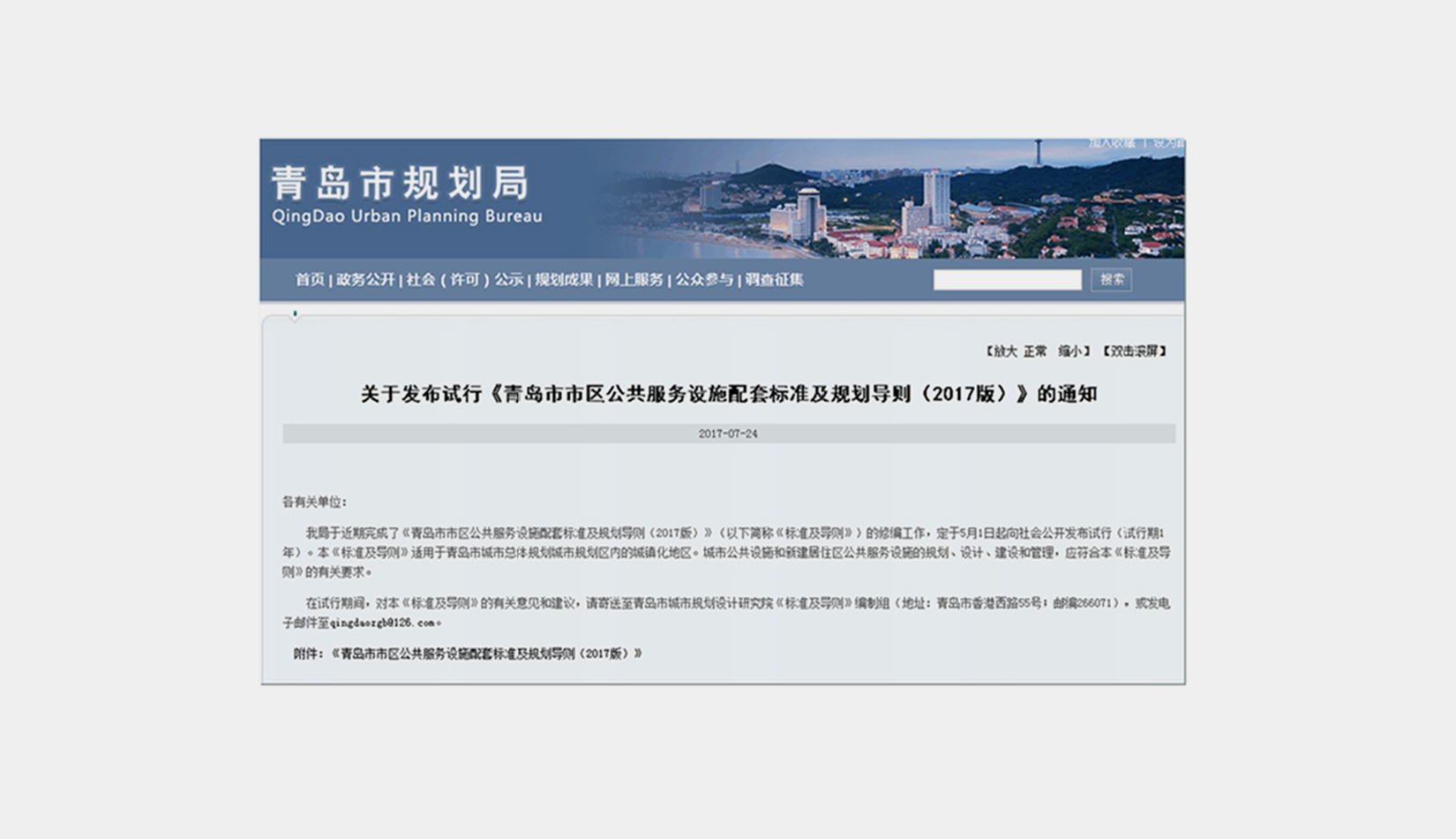 項目名稱:《青島市市區(qū)公共服務(wù)設(shè)施配套標準及規(guī)劃導(dǎo)則》修編