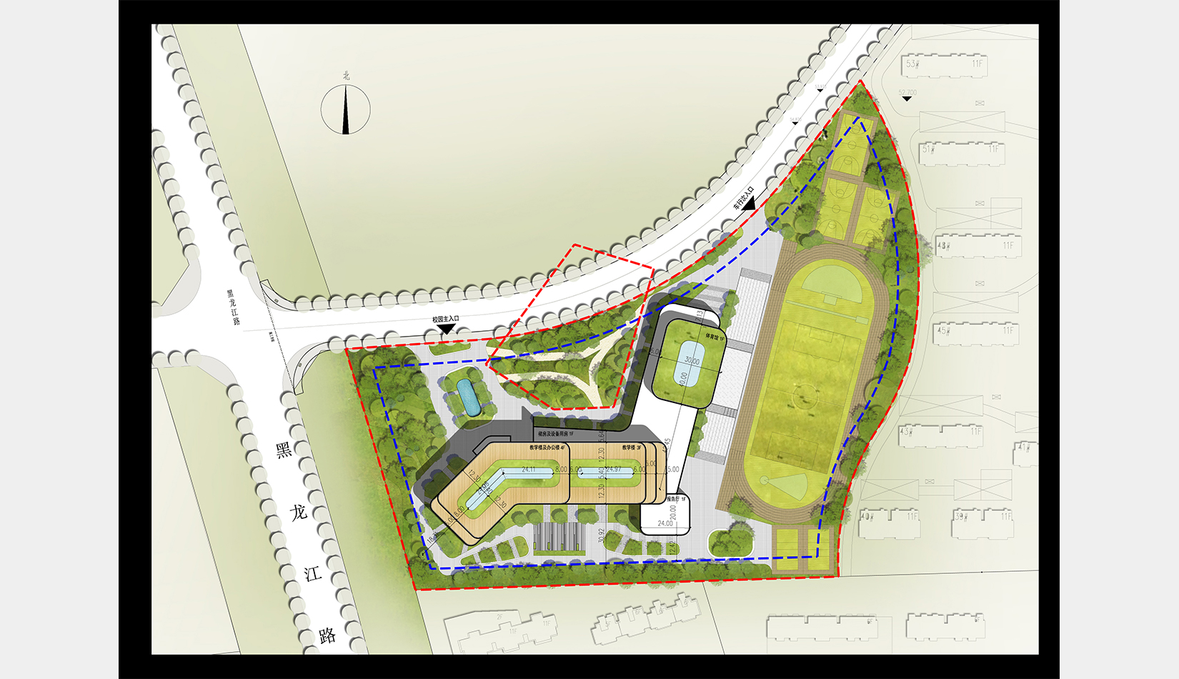 功能分區(qū)遵循“教學(xué)—觀演—運(yùn)動(dòng)”三點(diǎn)式布局原則,各功能之間聯(lián)系緊密,流線合理清晰。不再鋪設(shè)走廊,將連接性空間設(shè)計(jì)成“學(xué)習(xí)小徑”,從而創(chuàng)造更實(shí)用的空間以及一個(gè)更有效的建筑,同時(shí)營造出一種“學(xué)習(xí)無處不在”的氛圍。
