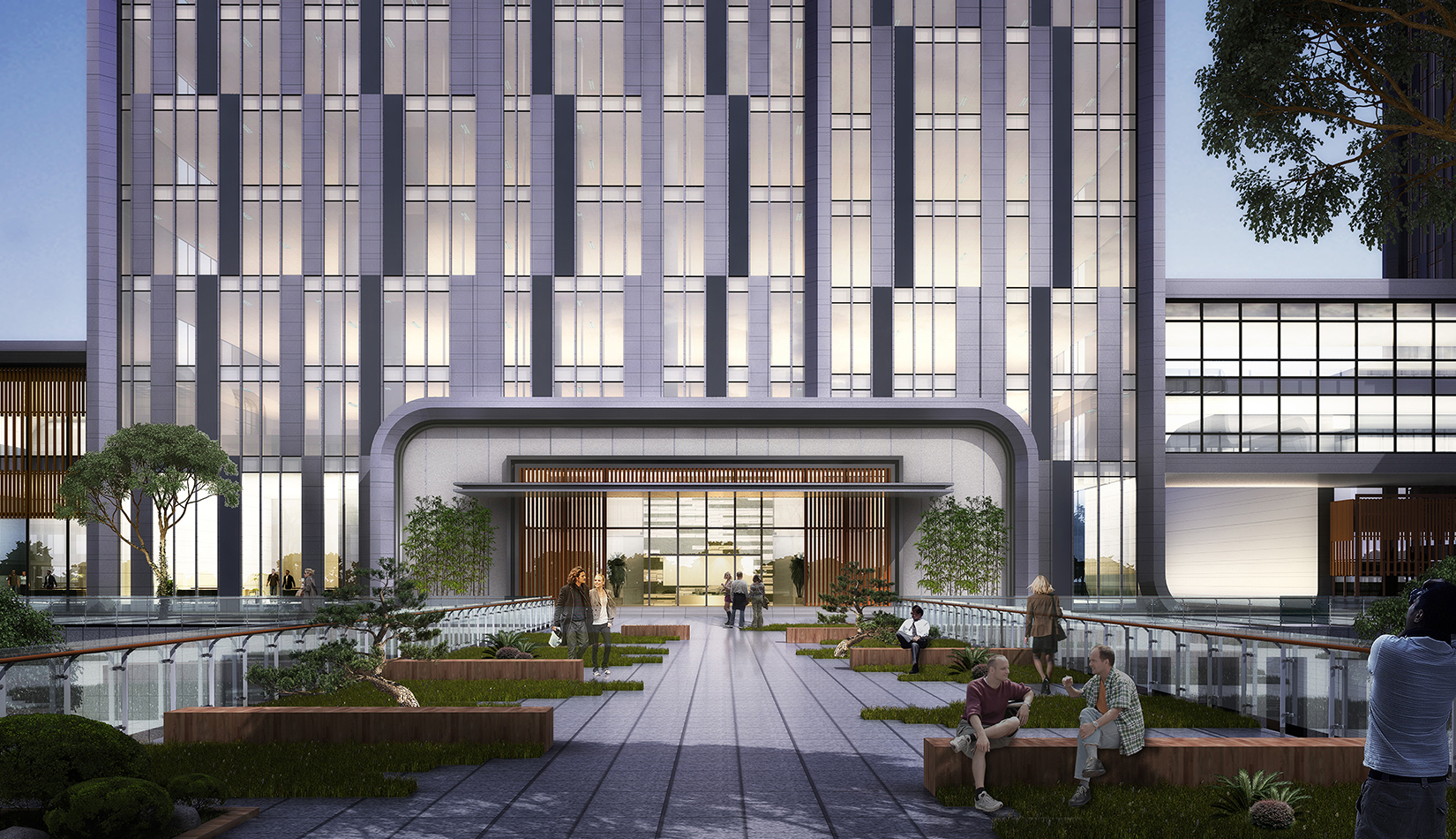 設(shè)計采用金屬板與玻璃為主要建筑材料,建筑高聳挺拔、簡約大氣,極具現(xiàn)代感。