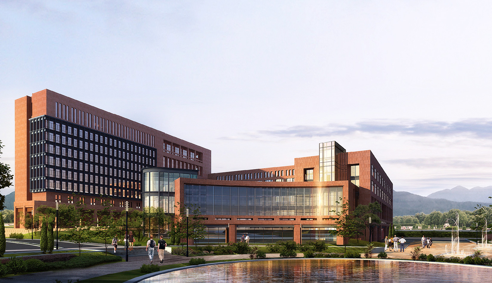 總體的規(guī)劃布局圍繞中心景觀廣場展開設(shè)計(jì)。首先從山區(qū)建筑布局師法自然,藏風(fēng)聚氣的傳統(tǒng)觀念出發(fā),結(jié)合現(xiàn)代科學(xué)嚴(yán)謹(jǐn)求真務(wù)實(shí)的態(tài)度,設(shè)計(jì)以東側(cè)入口廣場導(dǎo)入的中心景觀空間圍合展開規(guī)劃布局,總體上根據(jù)土地的使用性質(zhì)分為四個(gè)區(qū),分別是正對主入口北側(cè)的生活區(qū),南側(cè)的孵化中心區(qū),正對主入口廣場的科研辦公區(qū),以及整個(gè)用地最南端的產(chǎn)業(yè)開發(fā)區(qū),各個(gè)區(qū)既相互獨(dú)立同時(shí)又緊密聯(lián)系,功能上即考慮主導(dǎo)風(fēng)向又方便使用。